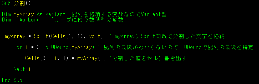 改行コードで分割 作業手順 その3 分割のコード紹介