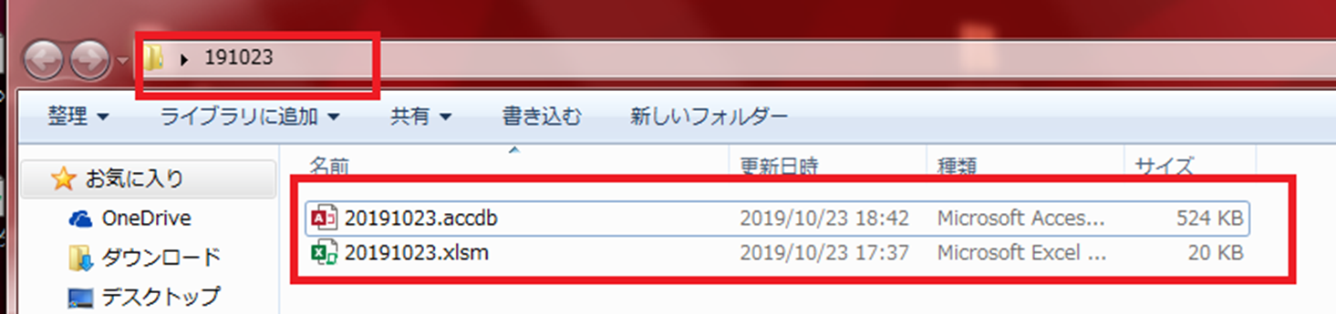 同一フォルダの、同一階層にExcelのファイル、ACCESSのファイルが別々になると、伊川の提供するサンプルファイルは動きません。