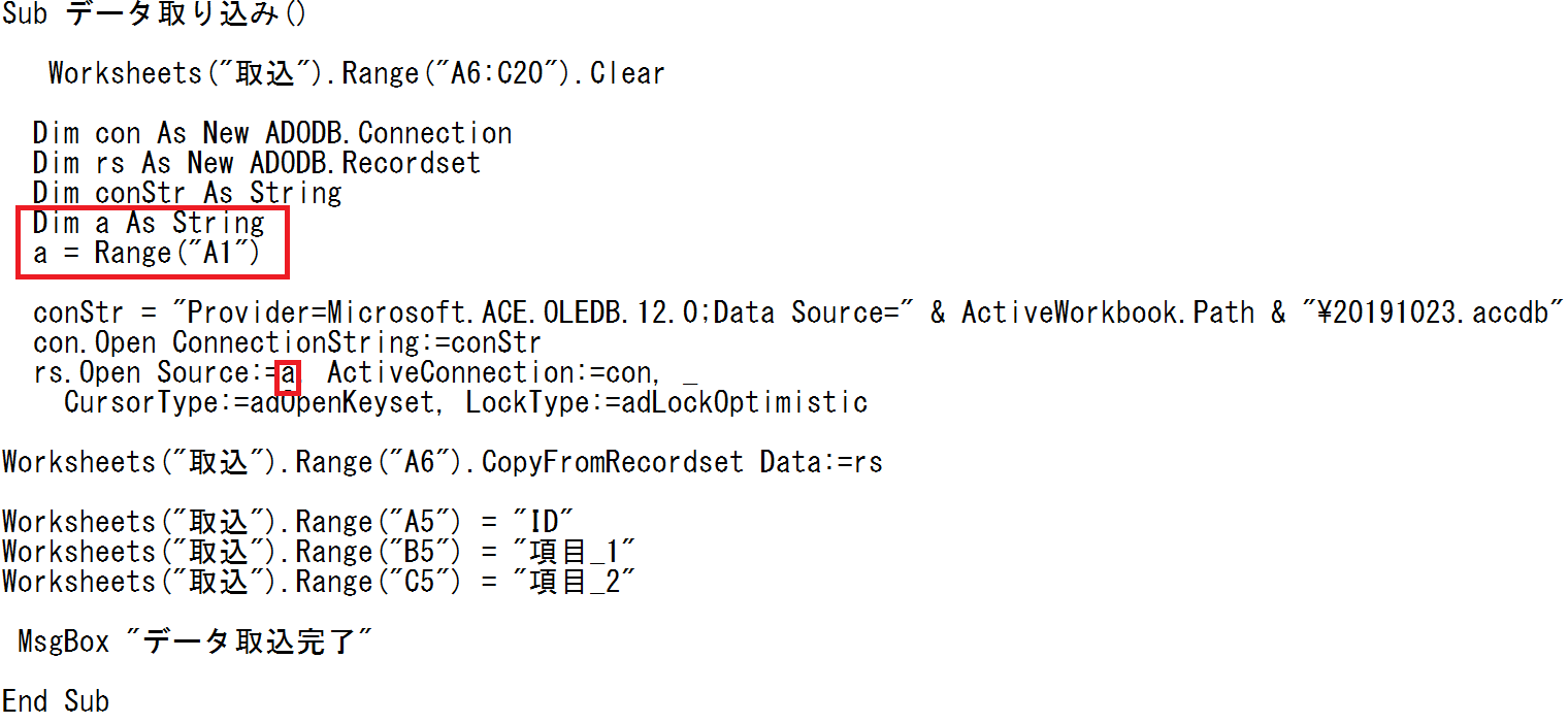 ・テータベースを抽出するたびに、VBAのエディタを開いてコードを書き換える。