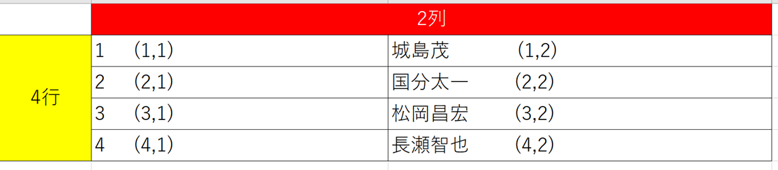 ・二次元配列は、Excelと同じように考えると説明しましょう。