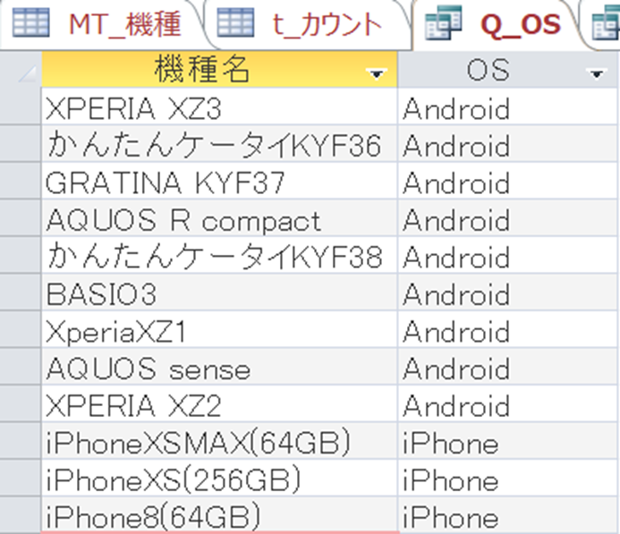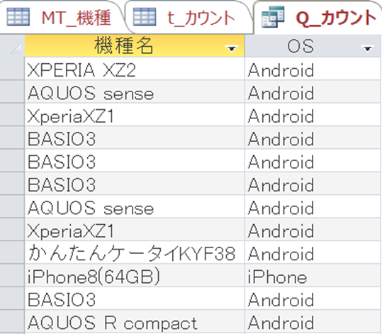 ・IIf関数を使って、iPhoneとAndroidを表示させる。・集計クエリを使う。