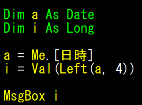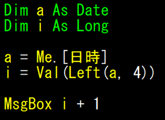 本当に、2020と表示されるのかをMsgBoxで検証します。